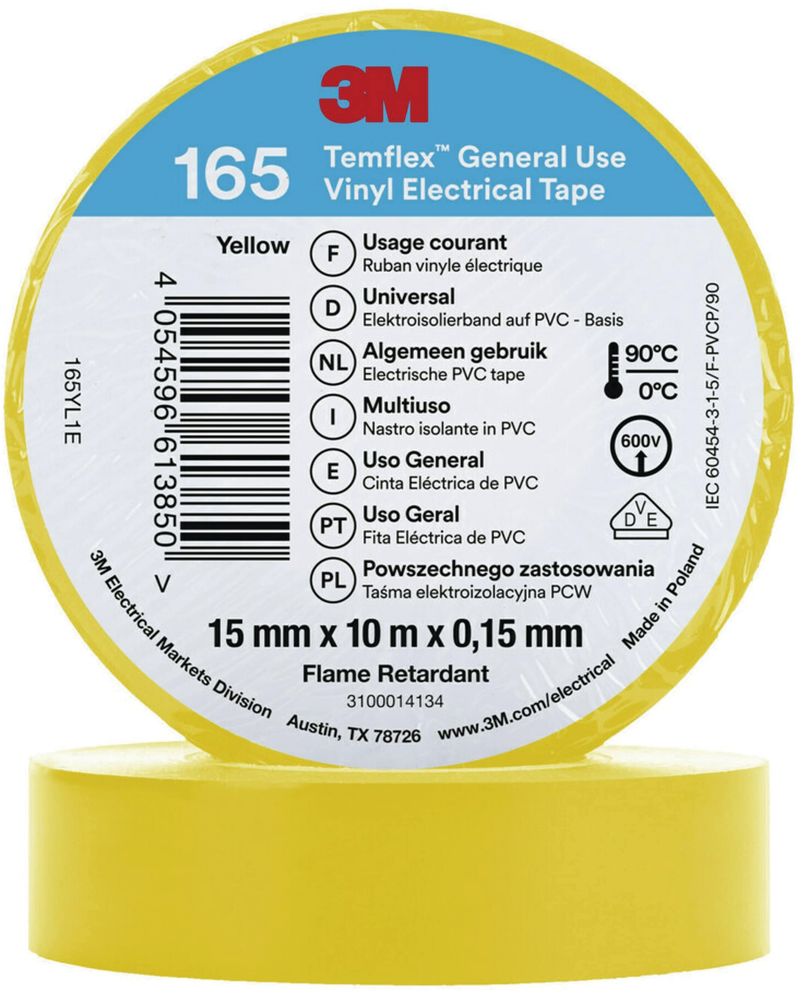 3M 165YL1E Temflex 15mmx10m Gelb Vinyl-Isolierband 0,15mm 7100184732