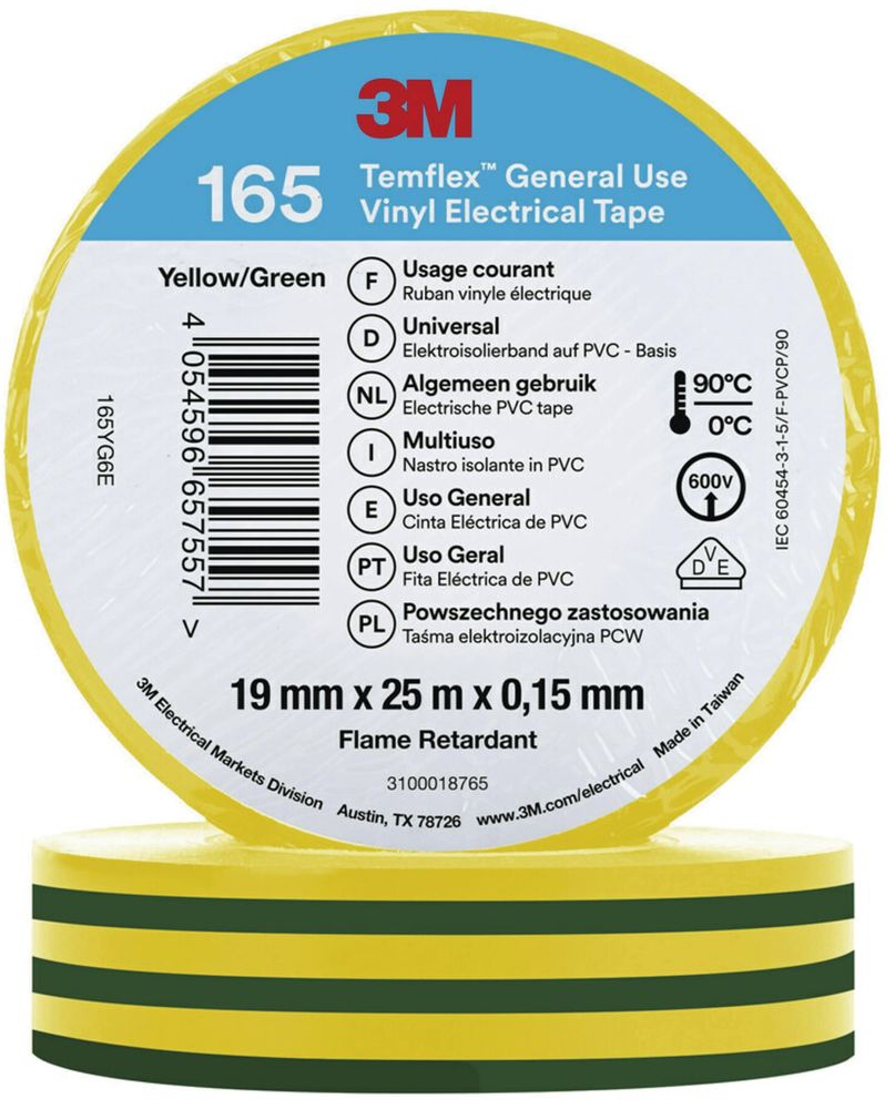 3M 165YG6E Temflex 19mmx25m Grün/Gelb Vinyl-Isolierband 0,15mm 7100222494