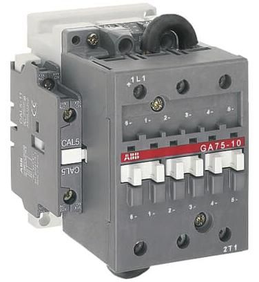 Das GA75 ist ein einpoliges Schütz, bei dem die an den Anschlussklemmen angegebenen Polaritäten eingehalten werden müssen. Es ist ferner mit 1L1 für den Pluspol und 2T1 für den Minuspol gekennzeichnet. Weiterhin ist es werksseitig mit einem 2-poligen seitlichen Hilfskontakt (1S+1Ö) ausgestattet.