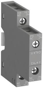 - CAL4 2-poliger Block mit Sofort-Schließer- und Öffnerkontakten. Zum Anbau auf der rechten bzw. linken Seite des Schützes.