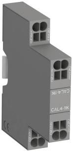 - CAL4 2-poliger Block mit Sofort-Schließer- und Öffnerkontakten. Zum Anbau auf der rechten bzw. linken Seite des Schützes.