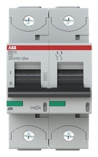 ABB S802C-C20 Hochl.-Sicherungsautomat, 20A, C,415VAC=Icu 25kA, 2P