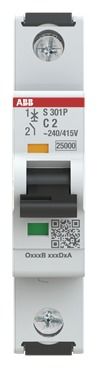 ABB S301P-C2 Sicherungsautomat C-Char.25kA 2A 1P 2CDS381001R0024