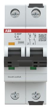 ABB S302P-C4 Sicherungsautomat C-Char.25kA 4A 2P 2CDS382001R0044