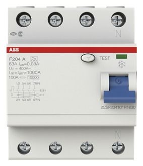 ABB Fi-Schutzschalter 4P 63A F204-63/0,03, 2CSF204101R1630