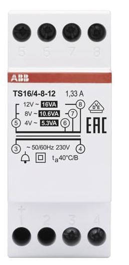 ABB TS16/4-8-12 Klingeltransformator 16VA 4-8-12VAC 2CSM228625R0812