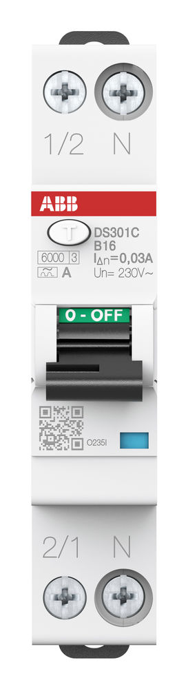 RCBO DS301C A Typ A ist 1-polig geschützt (LS), 2-polig schaltend.