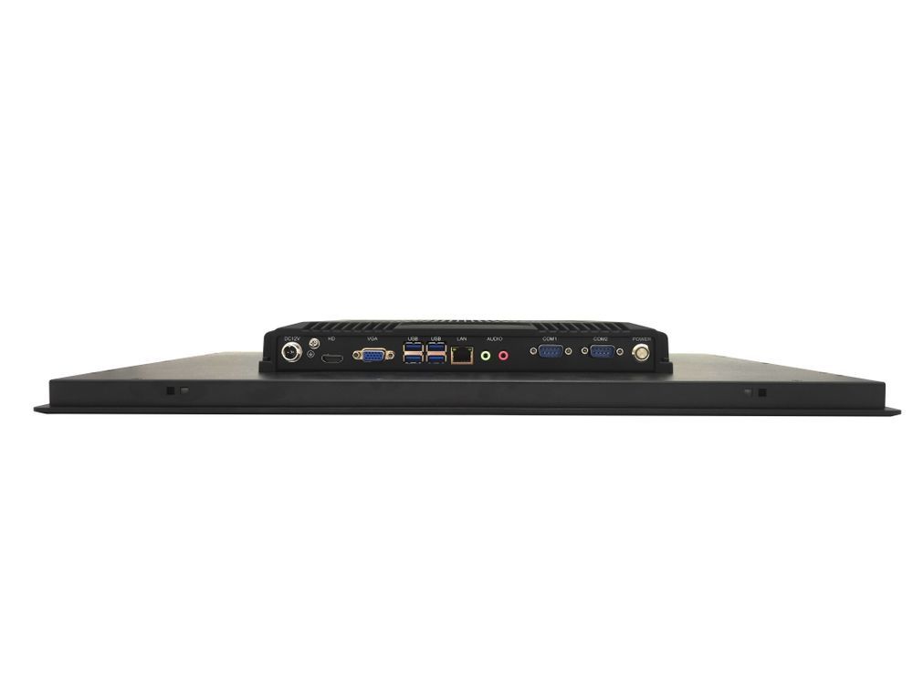 Optionale Wandhalterung siehe Zubehör !! Display Display Screen 53,3 cm ( 21 Zoll ) LCD Resolution 1920x1080 Brightness 600 cd/m2 Contrast 1000:1 Touch Screen Multi-Point Capacitive touch Performance Chipset Intel® WHISKEYLAKE CORE ™ i3 8145U RAM 8GB LPDDR4 memory Hardware Monitor Voltage, CPU, TEMP Watchdog Timer Support hardware reset function (256 levels, 0~255 seconds) Storage M.2, 128GB, up to 512GB Power Power Supply standard 12V/5A adapter Betriebssystem O/S Windows, Linux I/O Port USB 4*USB3.0 Ethernet 1* RJ45 Gigabit network interface COM 1*RS232 1*RS485 Audio 1*Line-out, 1*Mic-in Display 1*HD+1*VGA Mini PCIE 1*mini pcie Wifi/BT 2,4/5GHz GPIO no Environmental Anti-vibration 5-19Hz/1.0mm amplitude 19-200Hz/1.0g acceleration Anti-shock 10g acceleration, 11ms duration IP Level Front panel IP65 Reliability MTBF=50000h MTTR=0.5h Operating Temperature minus 10°C - bis +60°C belüftet Storage Temperature -20°C bi +70°C Operating Humidity 95% @40°, non-condensing Mechanical Dimensions Mounting size VESA mounting: 100*100mm Embedded installation: 526.3mm x 317.7mm Material Fanless High-strength and elegant Al-alloy panel Weight 6.30kg (N.W.) / 6.80kg (G.W) Color Black