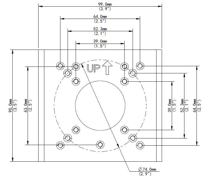 99mmx90mmx38mm (3.9”x3.5”x1.5”)Bracket ALL-CAM2497-LEN Pole Mount/Masthalter Application Outdoor, pole or rail installation for bullet camera of IPC22X, IPC24X and IPCB1XX series Dimensions (L × W × H) 99 × 90 × 38mm (3.9” × 3.5” × 1.5”) Embrace hoop diameter 67 ~ 127mm (2.6” ~ 5”) Weight 0.2kg (0.44lb) Material Aluminum, Stainless steel