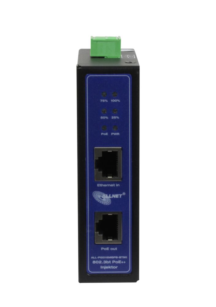 ALLNET PoE Injektor Industrial MultiGigabit ? PoE BT mit Power-Booster (15,4W/30W/90W) ? DIN ?ALLNET PoE Injekt Metallgehäuse ? ALL-PI2015MGPB-BT90