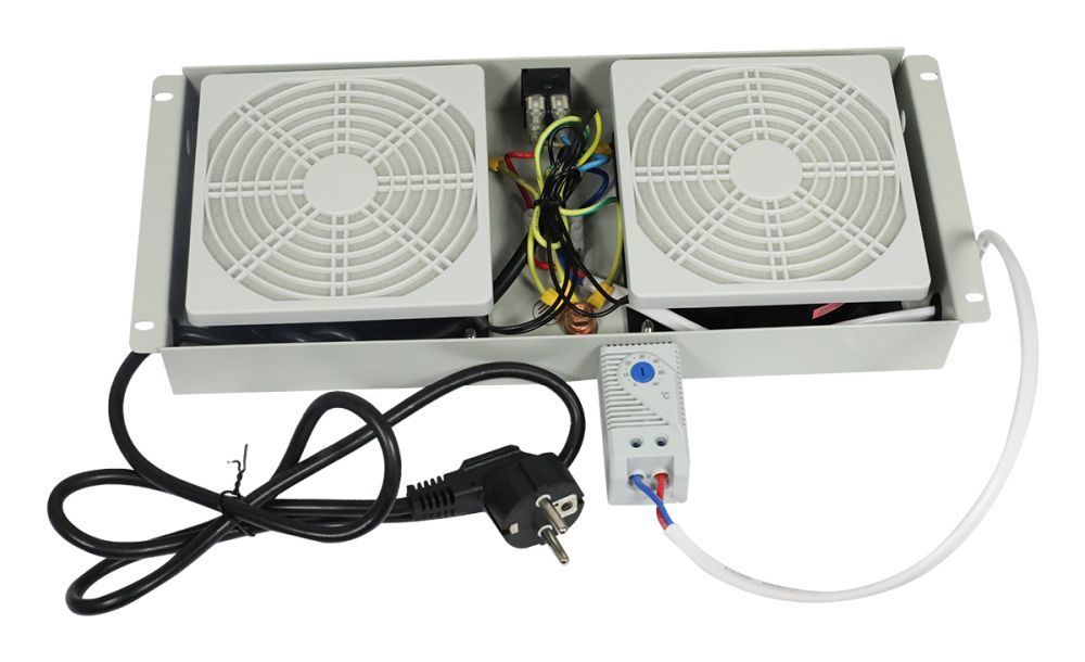 Passendes Zubehör für ALLNET 19Wandgehäuse, zbh. nur für SO-19-Serie, Lüftereinheit 2-fach mit Schalter und Temperatureinheit, Lichtgrau,