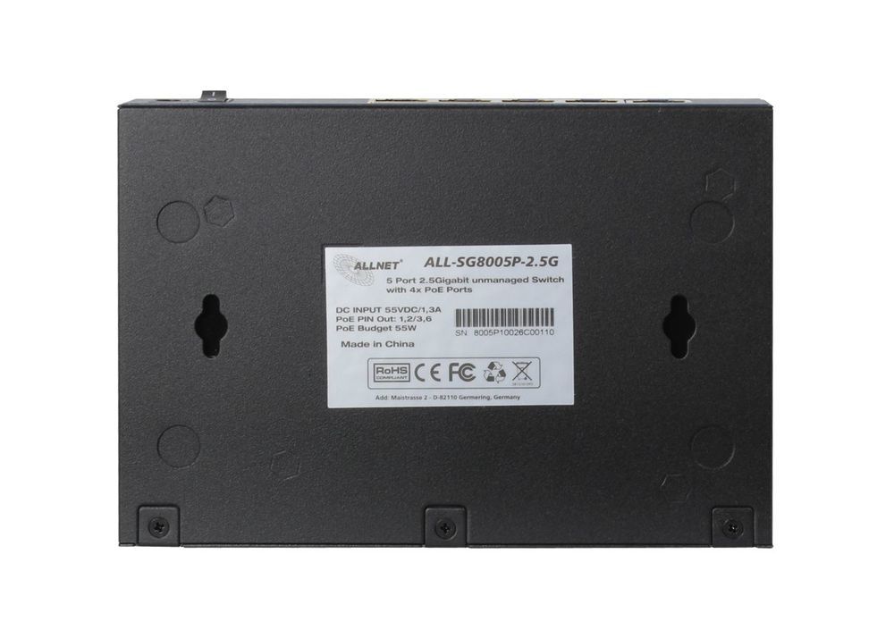ALLNET Switch unmanaged Layer2 5 Port ? 5x 2.5GbE ? PoE Budget 55W ? 5x PoE at ? Lüfterlos ? ALL-SG8005P-2.5G
