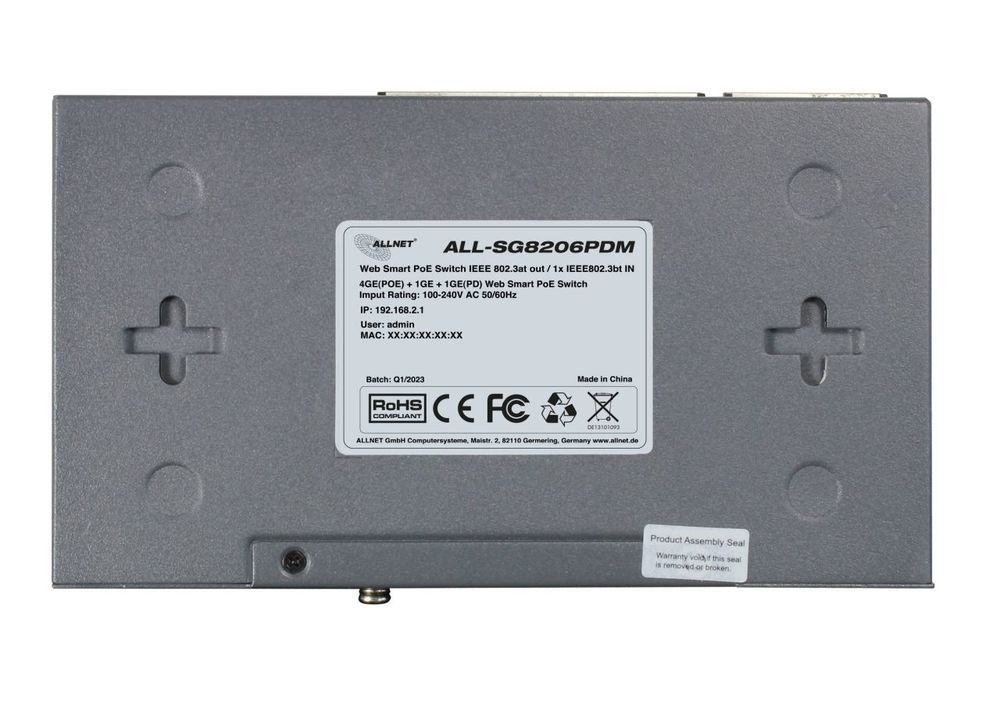 ALLNET Switch smart managed 6 Port Gigabit 95W / 4x PoE / 1x Gi 6 Port Gigabit 95W / 4x PoE / 1x PoE bt In / ALL-SG8206PDM