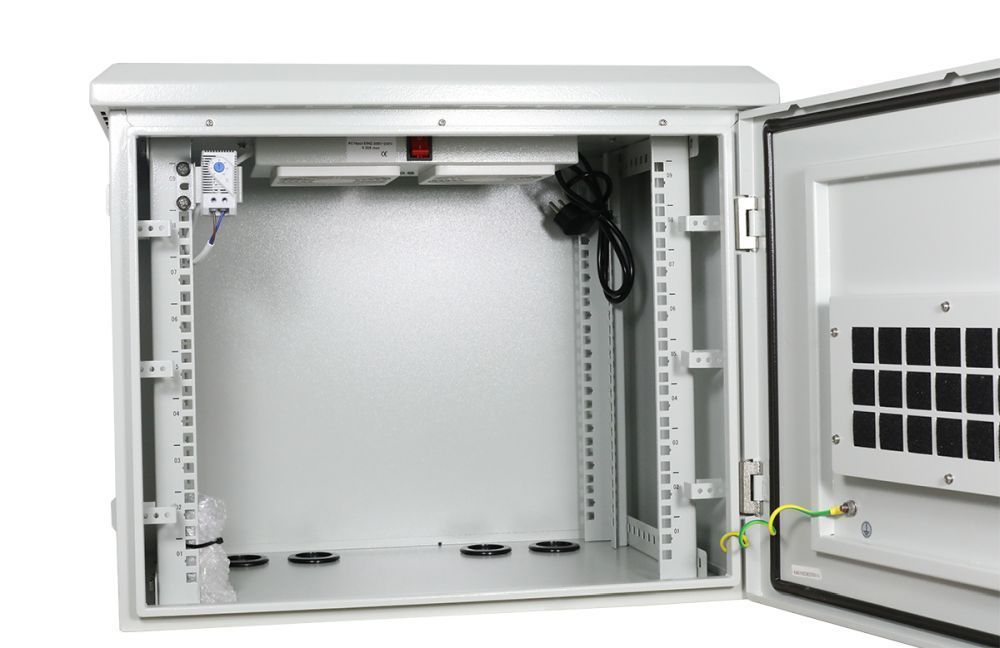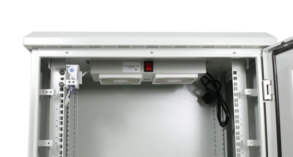 ALLNET 48,3 cm ( 19 Zoll )Wandgehäuse, 9HE, T638mm, Lichtgrau, IP55, SO-Serie, incl. 4-Fach Lüftereinheit