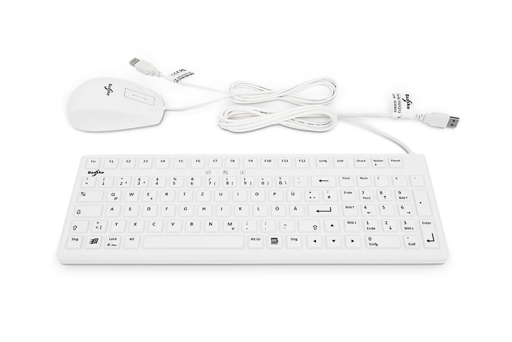 Die Baaske ST medizinische Tastatur überzeugt durch ihre optimierte Tastenhöhe, die eine leichte Reinigung ermöglicht und gleichzeitig das Gefühl einer modernen Laptoptastatur vermittelt. Der leise Tastenanschlag bietet dem Anwender eine komfortable Bedienung und einen ausgezeichneten Druckpunkt. Zusätzlich ist die Tastatur vollständig versiegelt, fugenlos und kann in Flüssigkeiten getaucht werden (IP68). Der selbstrückstellende Tru-Lock Mechanismus erlaubt die Reinigung während des Betriebs.