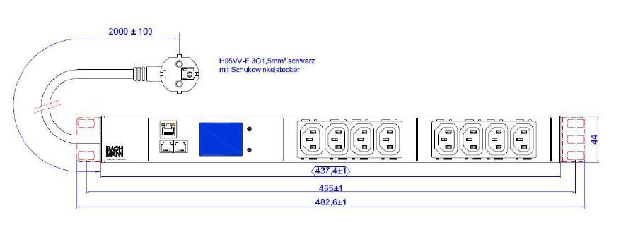 Bachmann PDU, Steckdosen, 8xDosen(C13)-> Zuleitung 2m, 16A, mit Stecker CEE7/7, BN2000,