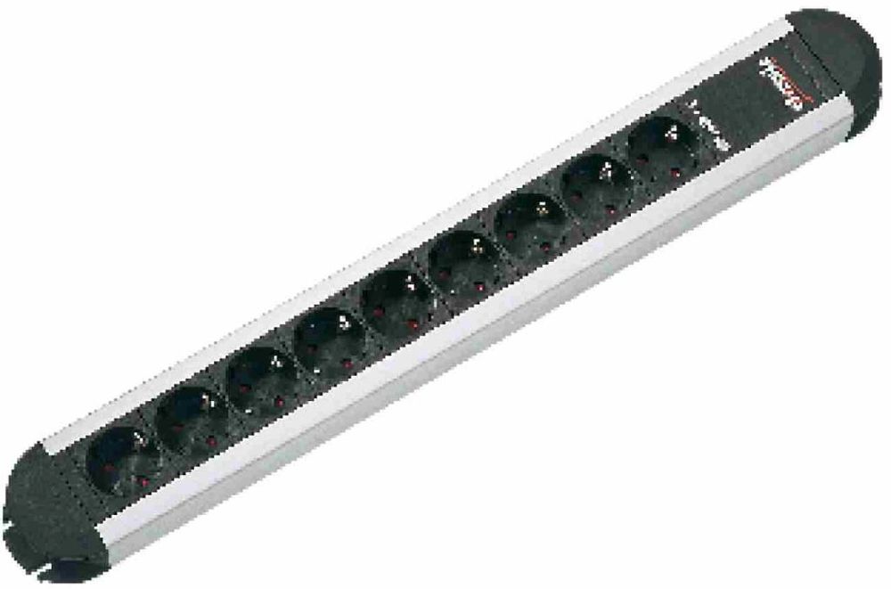 Tischsteckdose PRIMO-CLASSIC-ALU 9-fach ohne Schalter , wiederanschließbar 1,75m HO5VV-F 3G1,5mm² schwarz im Polybeutel