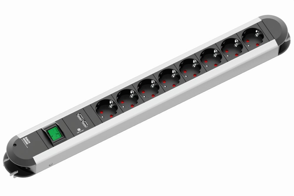 Bachmann Tischsteckdose, 8xDosen(CEE7)->Stecker(CEE7), 1xUSB, 1xSchalter, 2m, PRIMO,