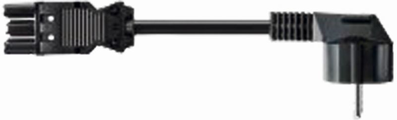 375.000, Gerätezuleitung GST18/3 1,5m H05VV-F 3G1,5mm² schwarz; S1: Schutzkontakt-Winkelstecker; S2: Wieland GST18/3 Buchse sw; Type: 92.232.1507.1