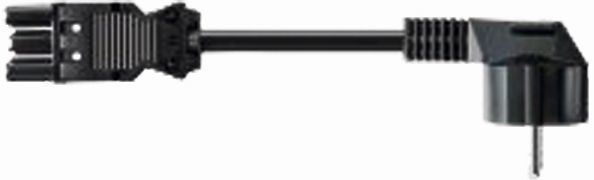 Gerätezuleitung GST18/3 2,0m H05VV-F 3G1,5mm² schwarz; S1: Schutzkontakt-Winkelstecker; S2: Wieland GST18/3 Buchse sw; Type: 92.232.2007.1