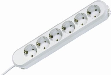Tischsteckdose SMART 6fach weiß ohne Schalter, öffenbar, mit Kinderschutz 3m H05VV-F 3G1,5mm² Schutzkontaktdose geschraubt, im Polybeutel mit Header