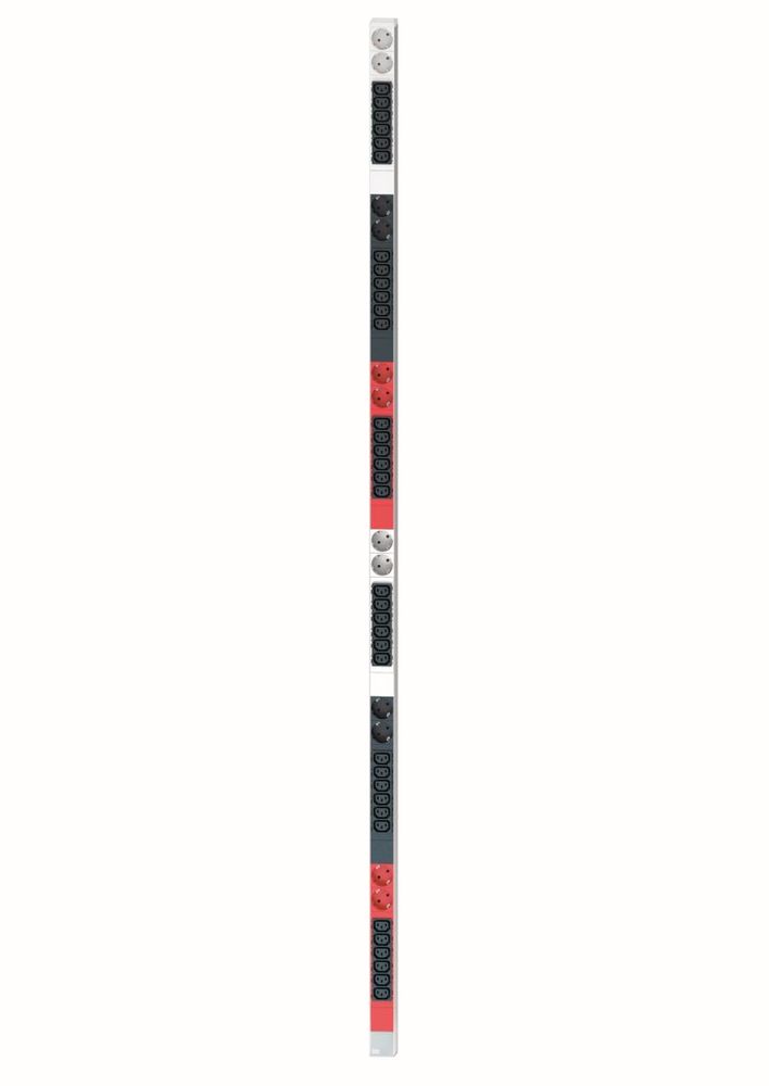 PDU Basic ALU 1HE VM Einspeisung 1 18x IEC C13 Steckdosen verriegelbar 6x Schutzkontaktdosen farblich gekennzeichnet aufgeteilt auf 3 Phasen mit Beschriftung d. Phasen 3,0m H05VV-F5G2,5mm² sw mit Aderendhülsen Einspeisung 2 18x IEC C13 Steckdosen verriegelbar 6x Schutzkontaktdosen farblich gekennzeichnet aufgeteilt auf 3 Phasen mit Beschriftung d. Phasen 3,0m H05VV-F5G2,5mm² sw mit Aderendhülsen Länge ca. 1840mm inkl. Befestigungswinkel verpackt im neutralen Karton
