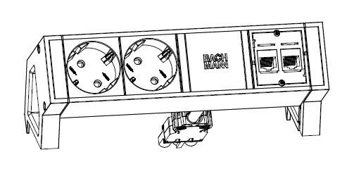 Bachmann Desk2 Steckdosenleiste, 2xDosen(CEE7)/2xCAT6A, mit Zuleitung GST18, Farbe weiss/Schwarz
