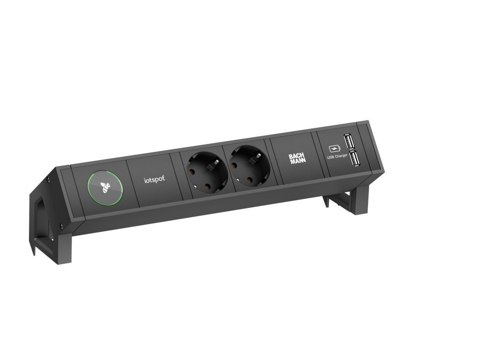 Bachmann Desk2 Steckdosenleiste, 1xiotspot, 2xDosen(CEE7), 1xUSBCharger, 0,2m GST18, sw