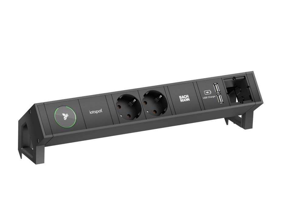 Bachmann Desk2 Steckdosenleiste, 1xiotspot, 2xDosen(CEE7), 1xUSBCharger, 1xCM 0,2m GST18,sw