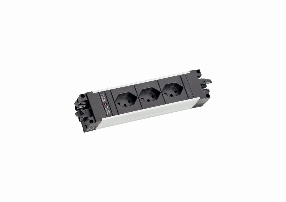 Bachmann STEP ALU, Steckdose, 3xDosen(CH 90°)->2x(GST18i3), inkl. Thermosicherung 10A, *nur für die Schweiz*