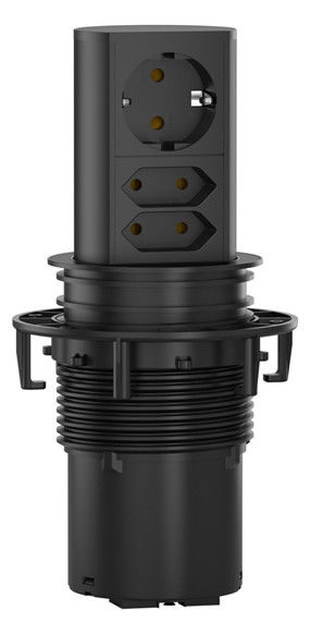Bachmann Elevator 1xSchutzkontaktsteckdosen 2xEuro Zuleitung 2,0m AEH, Aluprofil sandgestrahlt und schwarz eloxiert Schwarz matt Blenden