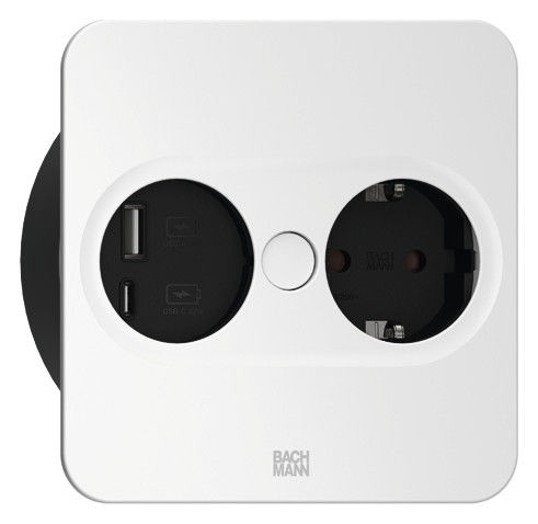 Bachmann TWIST, Steckdose, 1xCEE7/3, 1xUSB A/C 22W 2,0m AEH RAL9010 30GE eckig