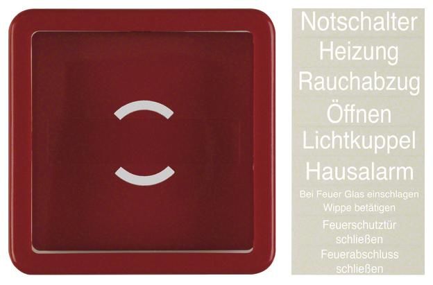 Berker 1295 Zentralstück mit Glasscheibe, Wippe Klebe-Schriftfolien wg UP IP44 rot