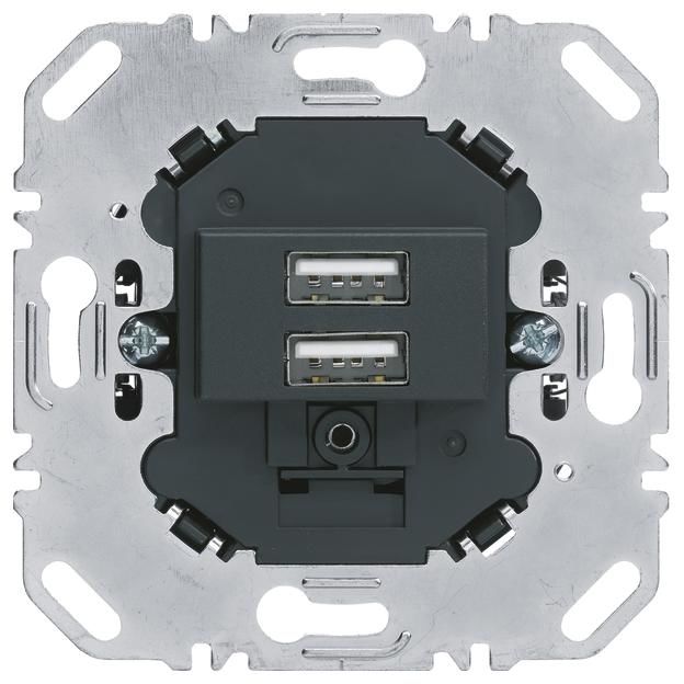 Berker 260205 USB Ladesteckdose 230V 2fach 3.0A eckiger Tragring anthrazit