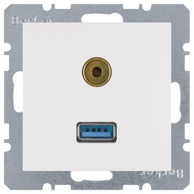 Berker 3315391909 USB/3,5mm Audio Steckdose S.1/B.1/B.3/B.7 Glas polarweiß