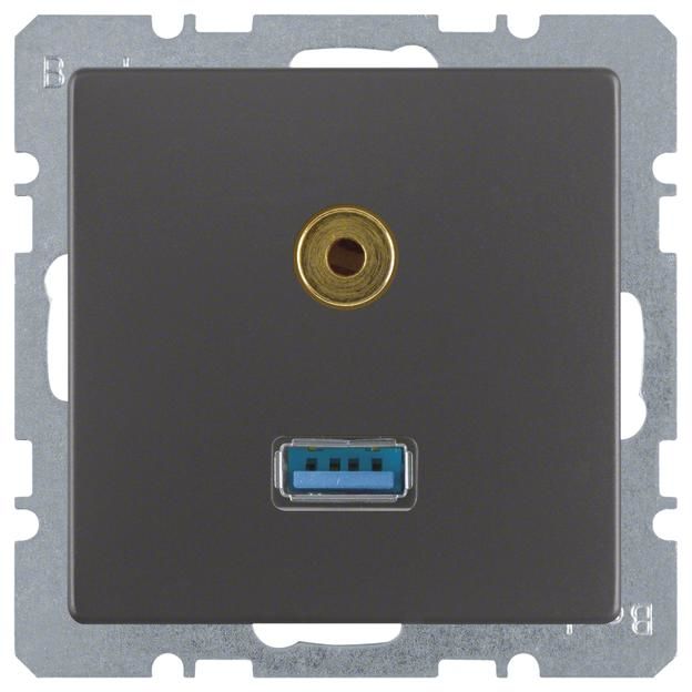 Berker 3315396086 USB/3,5mm Audio Steckdose Q.1/Q.3 anthrazit samt
