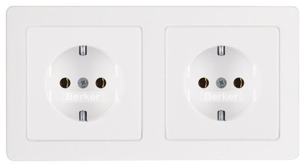 Berker 47206089 Steckdosen-Kombination SCHUKO 2fach mit Rahmen Q.1 polarweiß,samt