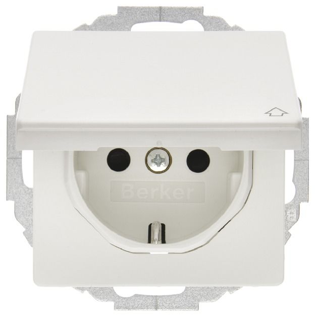 Berker 47446089 Steckdose SCHUKO+Klappd. und erh.BS Q.1/Q.3 polarweiß samt
