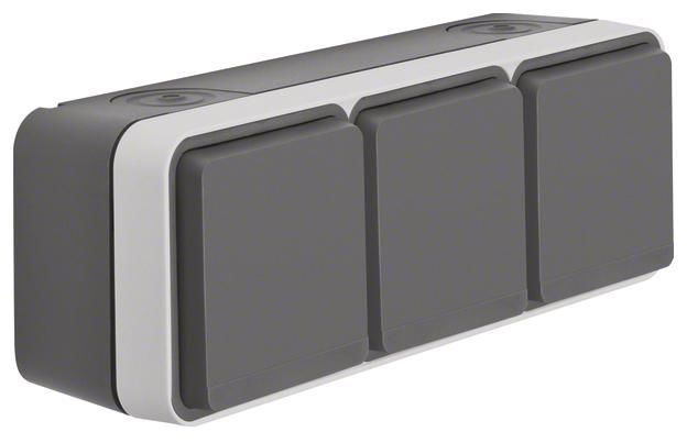 Berker 47733515 3fach-Steckdose SCHUKO mit Klappdeckel AP W.1 lichtgrau