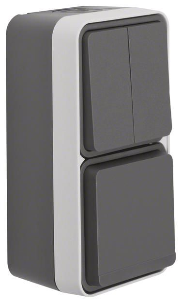 Berker 47903515 Serienschalter/Steckdose SCHUKO mit Klappdeckel AP W.1 lichtgrau