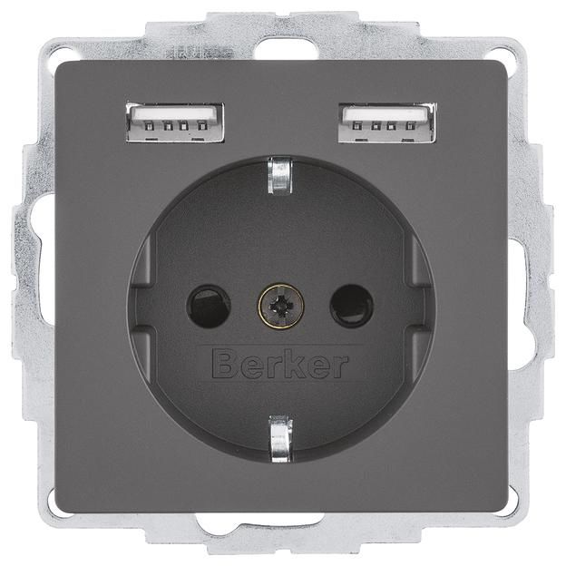 Berker 48036086 Steckdose SCHUKO/USB Q.x anthr.samt