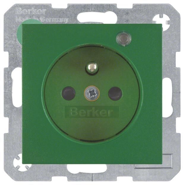 Berker 6765091913 Steckdose mit Schutzkontakt+KO-LED S.1/B.3/B.7 grün matt