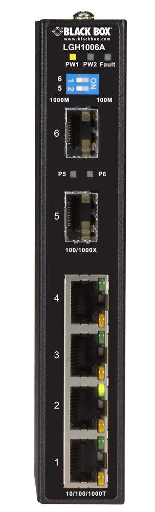 BlackBox LGH1006A Gehärtete Ethernet Switch der LGH1000-Serie (4) 10/100/1000-Mbps RJ-45 + (2) GE SFP-slots