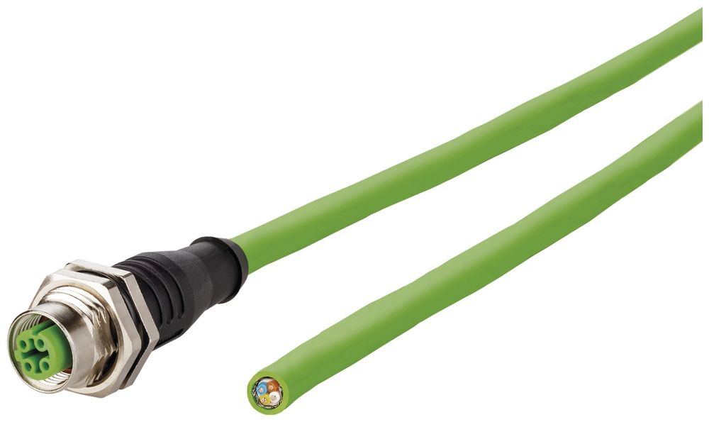 BTR 142M1D20010 Metz Anschlussltg.M12 D-kod. 1m AWG 22/7 Cat.5e M12 Buchse gerade gn