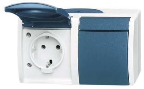 Busch Jaeger 2CKA002084A0699 BJ 20/2EW-53 Steckdose mit Klappdeckel waagerecht 2f ocean IP44 grau/blau