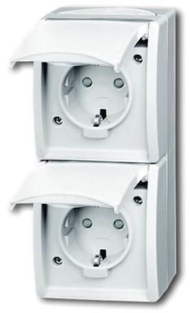 Busch Jaeger 2CKA002084A0722 BJ 20-02 EBW-54 Steckdose mit Klappdeckel senkrecht 2f ocean IP44 alpinweiss