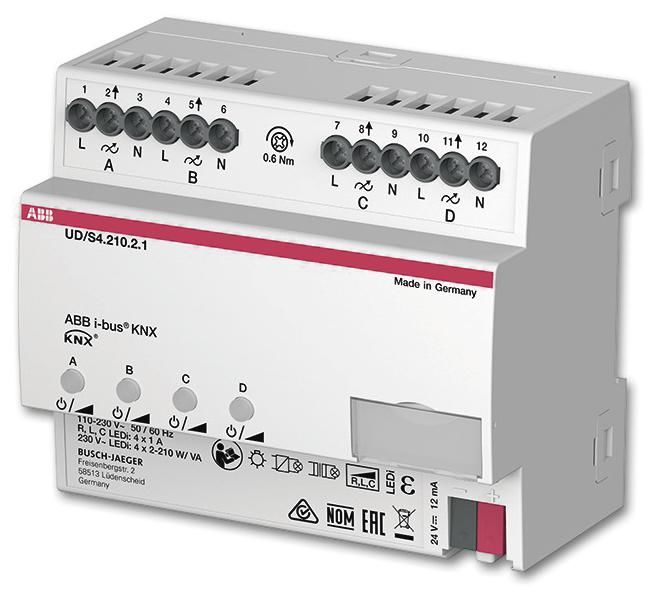 Busch Jaeger 2CKA006197A0047 ABB UD/S4.210.2.1 LED-Dimmer 4x210 W/VA Busch-Installationsbus KNX REG-Universa