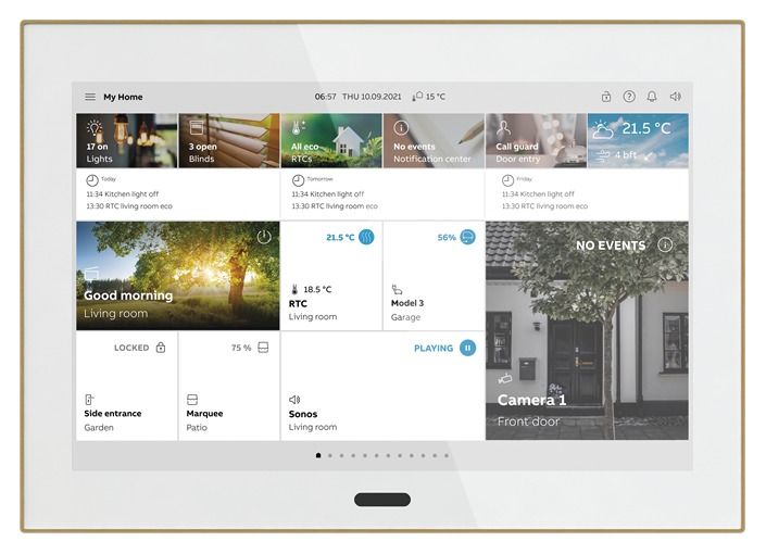 Das SmartTouch 10 bietet die Steuerung und Überwachung des free@home- oder KNX-Systems sowie die vollständig integrierten Funktionen von ABB Welcome®. Steuern, beobachten und verwalten Sie Ihre gesamte Anlage mit einem Gerät: Schalten - Dimmen - Slider - Jalousie - RGBW-Steuerelement - Stufenschalter - Szenenschalter - Anzeigeelement - Audio-Steuerelement.