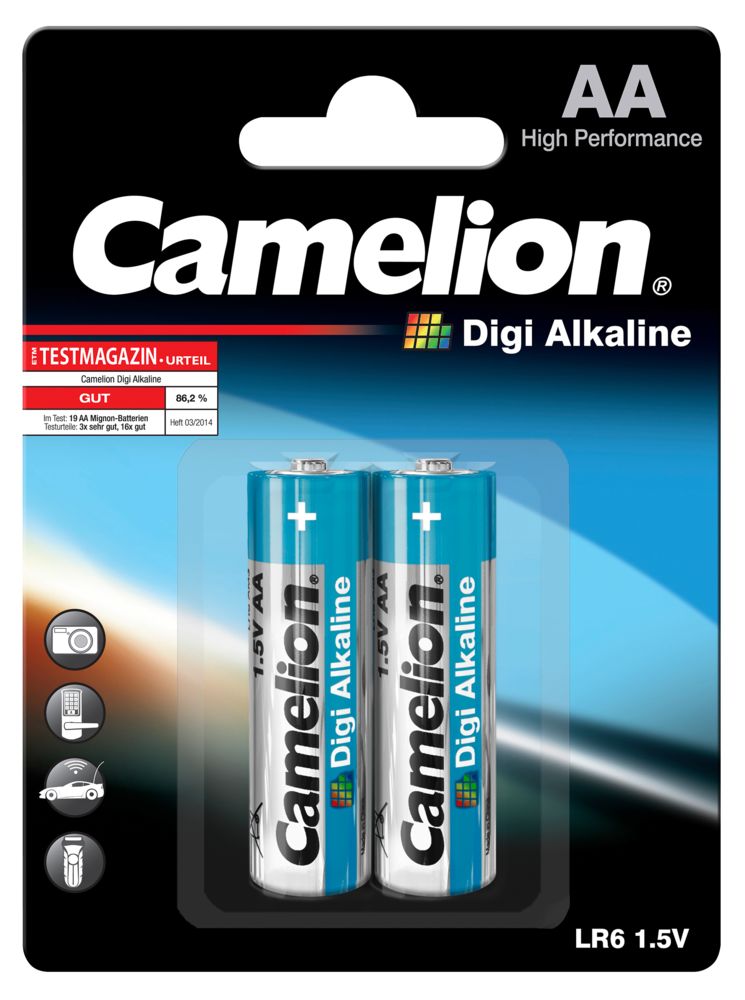 Mignon-Batterie CAMELION ''Digi Alkaline'' 1,5 V, Typ AA/LR6, 2er Blister