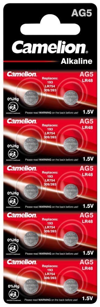 Knopfzelle CAMELION, AG5, 1,5V, Alkaline, 10er-Blister